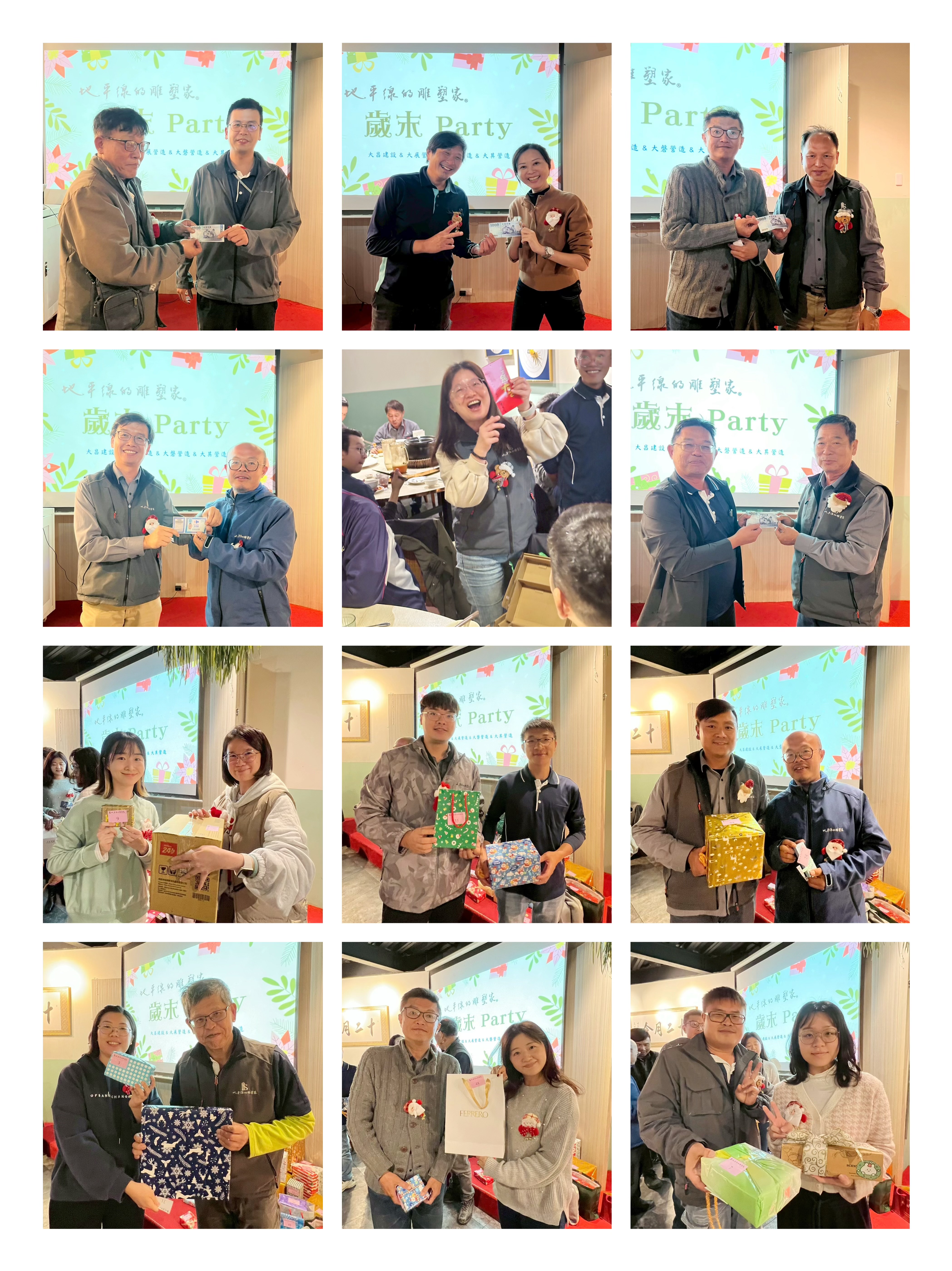 同仁們透過抽繩交換禮物,抽到誰就和誰互換驚喜,現場笑聲此起彼落。