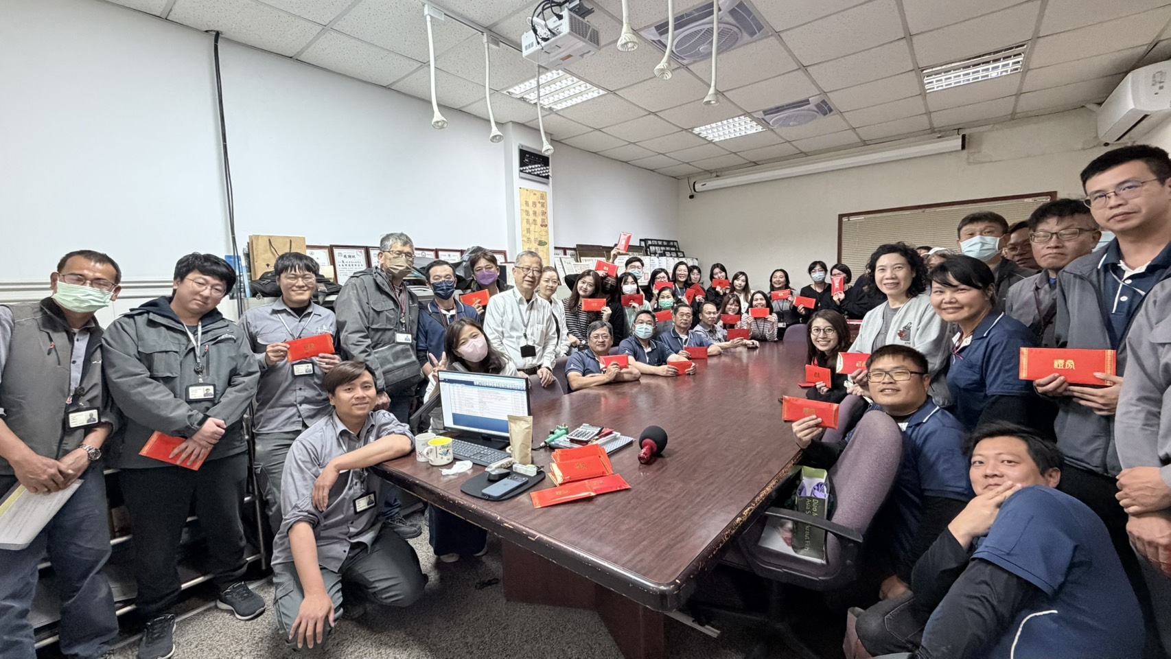 全體同仁齊聚一堂,由總經理致詞勉勵並發放紅包。