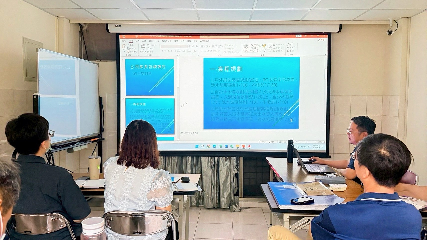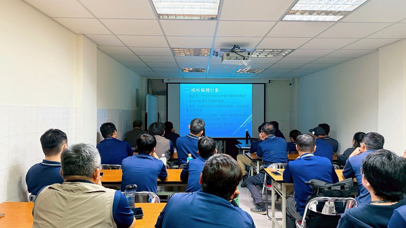 本次課程針對施工前的模板規劃進行深入說明,包含裝修厚度預留、排水與管道配置、機電與消防箱體整合等內容,協助同仁強化施工前的規劃能力與現場管理技巧。透過持續的內部訓練與經驗交流,提升團隊專業能力,優化工程品質與施工效率。